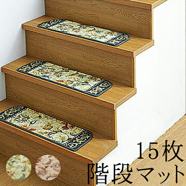 足元マット すべり止め アクリル 高級感 家具のショウエイ階段マット 防臭 更紗柄 クラシカル 吸水 滑り止め グリーン 吸水 更紗柄 滑り止めマット おしゃれ 階段マット 15枚 滑り止め ペット 速乾 グリーン 送料無料 猫 犬 防臭 日本製 抗菌 エレガント